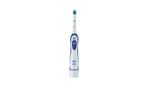Elektrische tandenborstel op batterijen "Oral-B Battery Toothbrush" met 9.300 rotaties per minuut (= heen- en weergaande poetsbewegingen). Geleverd met 2 Duracell Ultra M3 AA-batterijen. Biedt 1 PowerTip Indicator opzetborsteltje. De tandenborstel heeft een non-slip grip (voor goede houvast), een aan/uit-schakelaar en een (makkelijk te openen) batterij-compartiment. Er is tevens een beschermkapje voor de opzetborstel voorzien. Waterdicht. Kleuren: wit / blauw.