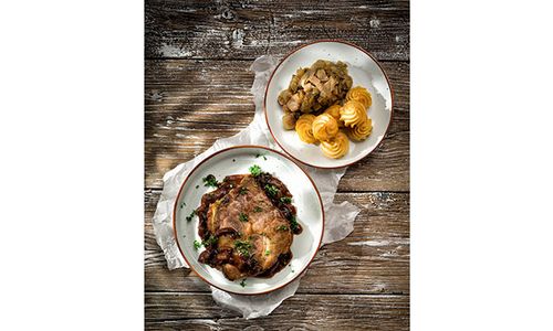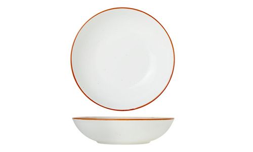Traditionele stijl door de kastanjekleurige contour in combinatie met melkwit porselein en een gespikkeld effect. Sterk én licht porselein. Vaatwasbestendig.