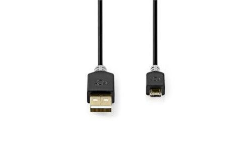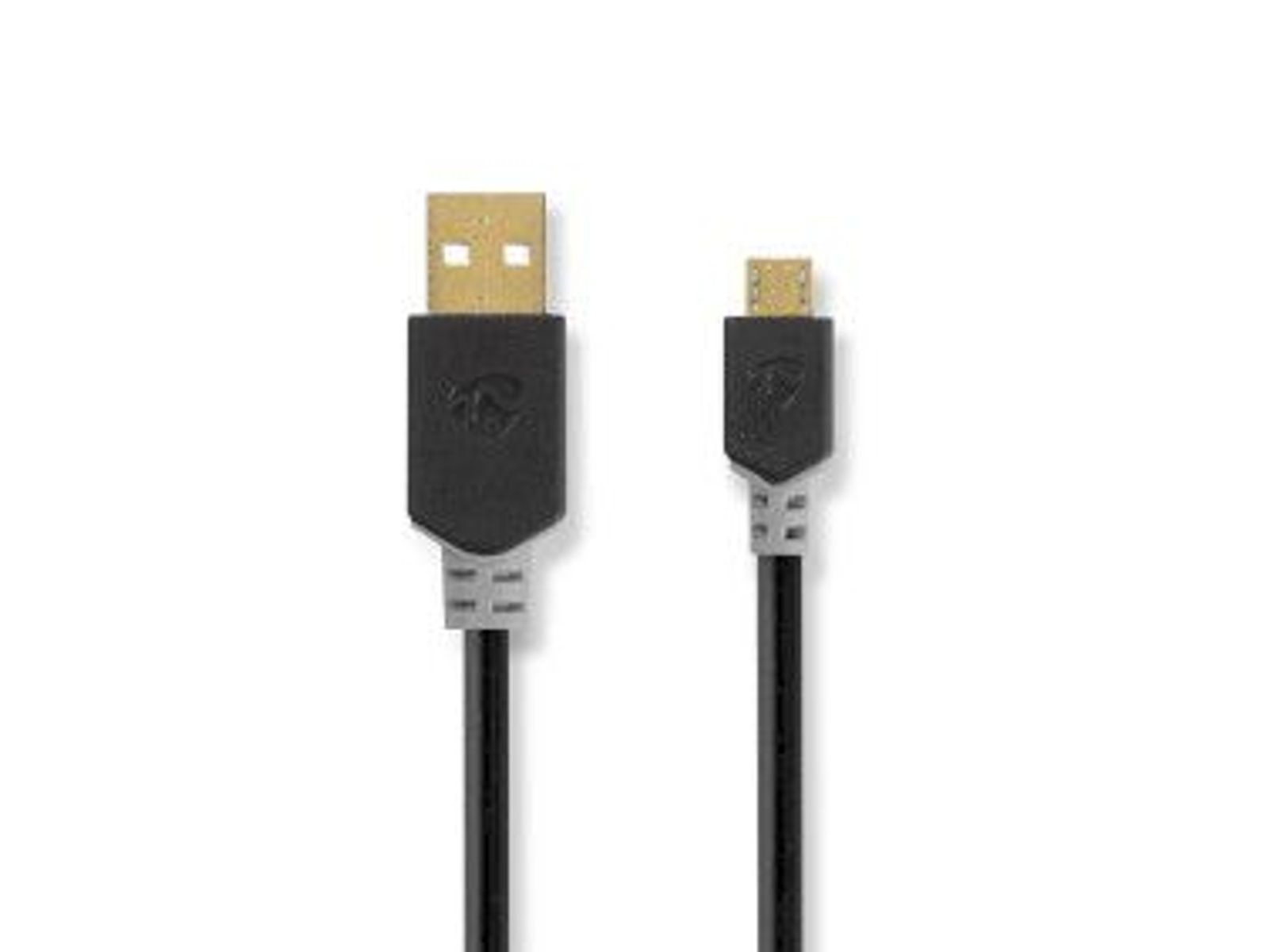 USB 2.0 | USB-A Male | USB Micro-B Male | 480 Mbps | Verguld | 2.00 m | Rond | PVC | Antraciet | Doos