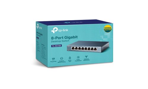 De TL-SG108 10/100/1000 Mbps Desktop switch met 8 aansluitingen van TP-LINK biedt een eenvoudige manier om de overstap naar gigabit ethernet te maken. U kunt de snelheid van uw netwerkserver en backbone verbindingen verhogen, of van gigabit op uw desktop een realiteit maken. De TL-SG108 heeft bovendien een laag energieverbruik. Dankzij zijn innovatieve energiebesparende techniek kan met de TL-SG108 tot 72% op het stroomverbruik worden bespaard, waardoor hij een milieuvriendelijke oplossing voor uw bedrijfsnetwerk is.