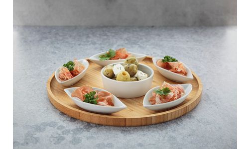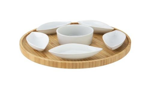 Serveerplank D26xh3cm Rond Bamboe+6 Keramieken Bowls (11.5x5x25cm)