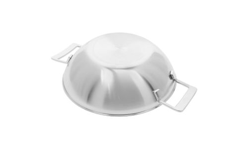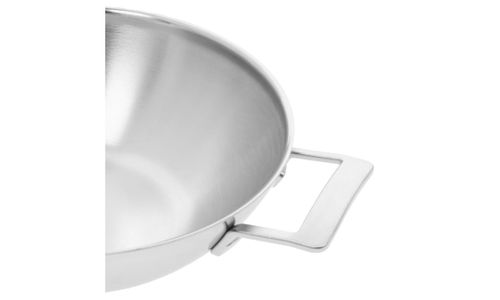 De truc van wokken of roerbakken is hoge hitte combineren met voortdurend omscheppen. Met deze Industry 5 wok met platte bodem ga je snel en goed aan de slag op eender welk fornuis. Zeker op een gasvuur maar ook op inductie. Waag je dus gerust aan gewokte kip met paprikareepjes, scampi in curry of noedels met rundvlees en erwtjes. Met deze onverwoestbare roestvrijstalen wokpan van 30 cm doorsnede kan je naast roerbakken bovendien ook stomen, stoven én karamelliseren. Het solide 5-lagenmateriaal tot aan de rand verspreidt de warmte vlot. De pan wordt heet in het midden en naar de randen toe geleidelijk koeler. Ideaal om te roerbakken. Deze wok uit de Industry 5 serie ziet er bovendien schitterend uit en dat blijft zo. Je reinigt hem makkelijk en hij verkleurt niet, ook niet als je vaak met zure of hele pikante woksauzen aan de slag gaat. Daar zorgt de unieke Silvinox®-technologie voor. Deze wok heeft bovendien twee grepen in plaats van een steel, waardoor hij gemakkelijker te hanteren is en minder plaats inneemt. Deze slimme en robuuste vormgeving in Amerikaanse industriële stijl, door de Belgische designer Stefan Schöning, blijft je voldoening geven.
