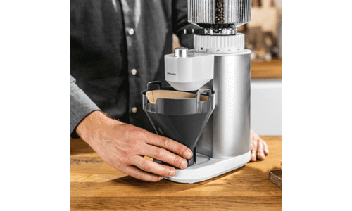 Uiteraard is de elektrische koffiemolen compatibel met ons ZWILLING Enfinigy koffiezetapparaat. De filterhouder past perfect onder de opening van de koffiemolen. Je kunt het poeder dus rechtstreeks in de filter malen en een heerlijk kopje verse koffie zetten. Ook ongelooflijk praktisch: Als de koffie gemalen is, kan je het bakje er gemakkelijk uithalen en afspoelen of in de vaatwasser plaatsen.