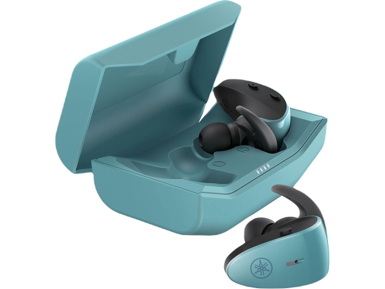 - Unieke earbud-vorm met siliconen vinnen voor een veilige en comfortabele pasvorm