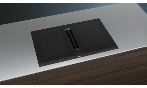 Kookplaat HC - iQ700 Inductie-geïntegreerde ventilatie 80 cm, flexInduction, 4 zones, Boost, timer, dual lightSlider, fryingSensor, BLDC-tech, 500/622m³/h, 68dB Facet design black B