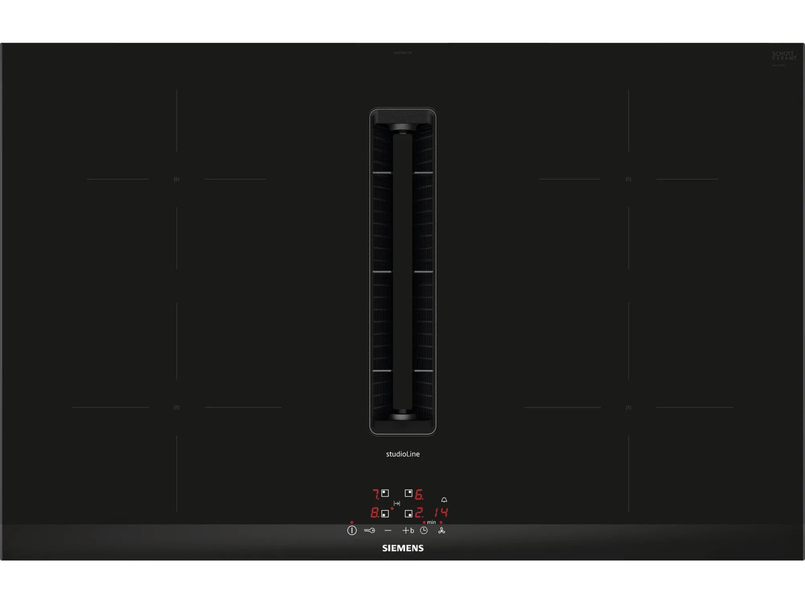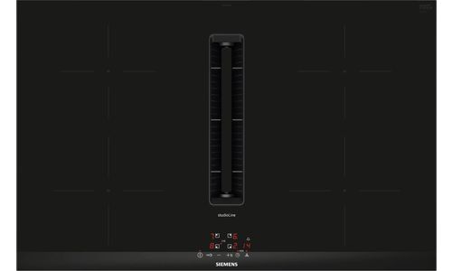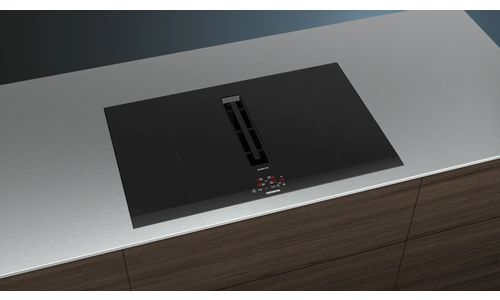 Kookplaat iQ300 Inductie-geïntegreerde ventilatie 80 cm, powerInduction, 4 zones, Boost, timer, easyTouch, BLDC-tech, 500/575m³/h, 68dB Facet design black B