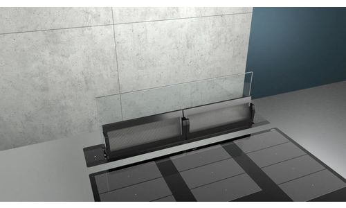 Met de nieuwe glassdraftAir kijk je vrijuit naar jouw open woonruimte. Guided Air zorgt voor een gordijn van lucht achter het glas voor een krachtige en stille afzuiging rondom elke kookzone. Hiermee is de lucht in jouw keuken gegarandeerd schoon.