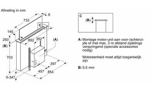 - Ruimtebesparende installatie: voor een optimaal ingerichte keuken.