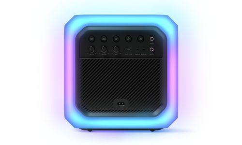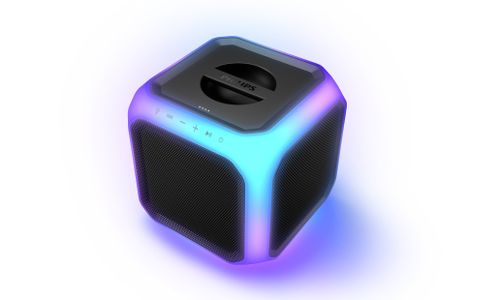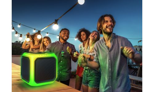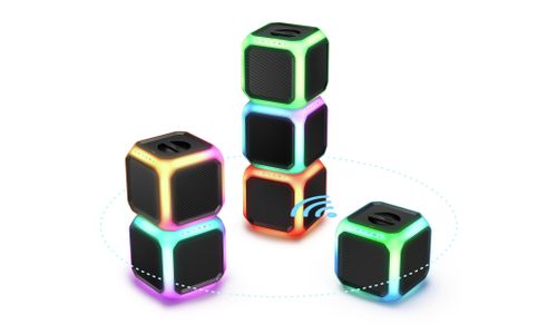 U kunt tot wel 50 luidsprekers op elkaar aansluiten. Dankzij het handvat aan de bovenkant en het kubusdesign kunt u de luidsprekers eenvoudig boven op elkaar plaatsen. Creëer een muur van geluid met een gloeiend netwerk van lampjes om uw feest los te laten barsten.