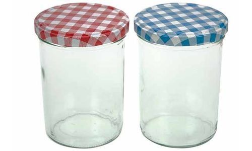 Confituurpot Set3 Transparant 44cl 8,5cm Deksels: 3x Blauw-wit Of 3x Rood-wit