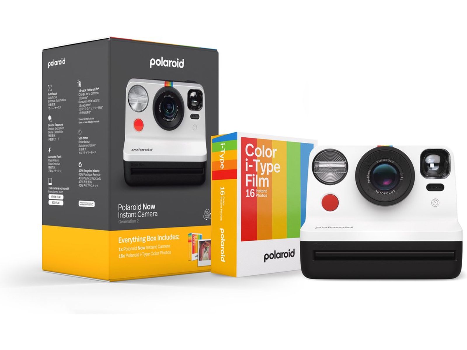 Welkom in de prachtig onvolmaakte wereld van Polaroid-fotografie met de Polaroid Now Generation 2-camera. De klassieke, iconische analoge instantcamera wordt geleverd met autofocus, een zelfontspanner en dubbele belichting. Allemaal in een klassiek ontwerp en nu gemaakt met 40% gerecyclede materialen. Compatibel met Polaroid i-Type & 600 film in het originele Polaroid instant film formaat.