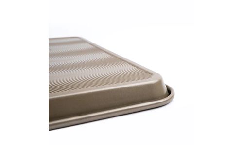 De golvende, gestructureerde bodem verhoogt de luchtcirculatie voor gelijkmatig koken en bruinen.