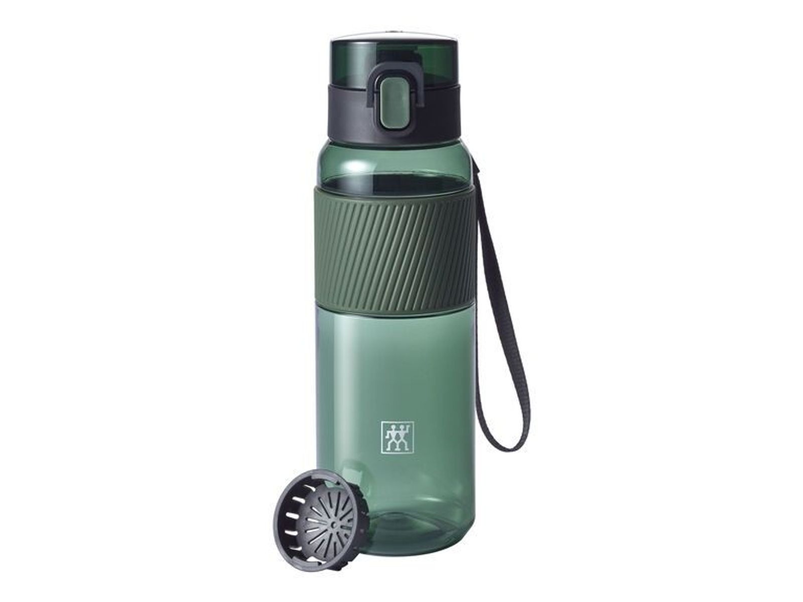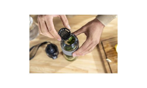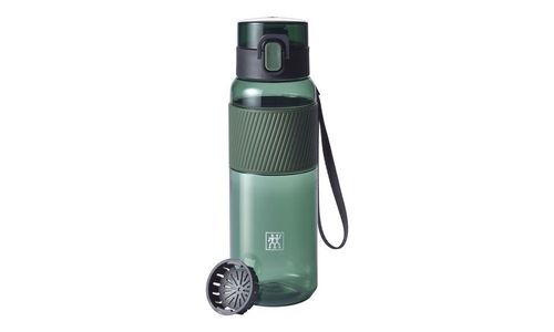 Ga je sporten, naar school of naar kantoor? Waar je ook gaat, je favoriete drankje gaat met je mee, dankzij je ZWILLING drinkfles! Het is een ideale metgezel voor je dagelijkse leven, gemaakt van breukvast Tritan, lekvrij dankzij de veiligheidssluiting en gemakkelijk mee te nemen in elke tas. Je kunt hem ook om je pols dragen dankzij de praktische, afneembare band. Tot 680 ml water of ijsthee kan gemakkelijk in de ZWILLING drinkfles worden gevuld door de grote opening - zelfs sappen zijn vrij van pitten en pulp, dankzij de fruitzeef. De fles bestaat uit BPA-vrij kunststof en is absoluut geur- en smaakneutraal en een zeer goed, duurzaam alternatief voor de PET-fles.