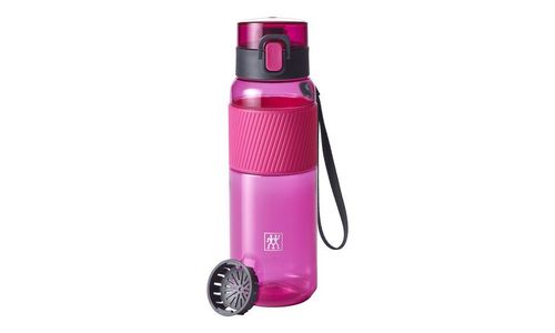 Ga je sporten, naar school of naar kantoor? Waar je ook gaat, je favoriete drankje gaat met je mee, dankzij je ZWILLING drinkfles! Het is een ideale metgezel voor je dagelijkse leven, gemaakt van breukvast Tritan, lekvrij dankzij de veiligheidssluiting en gemakkelijk mee te nemen in elke tas. Je kunt hem ook om je pols dragen dankzij de praktische, afneembare band. Tot 680 ml water of ijsthee kan gemakkelijk in de ZWILLING drinkfles worden gevuld door de grote opening - zelfs sappen zijn vrij van pitten en pulp, dankzij de fruitzeef. De fles bestaat uit BPA-vrij kunststof en is absoluut geur- en smaakneutraal en een zeer goed, duurzaam alternatief voor de PET-fles.