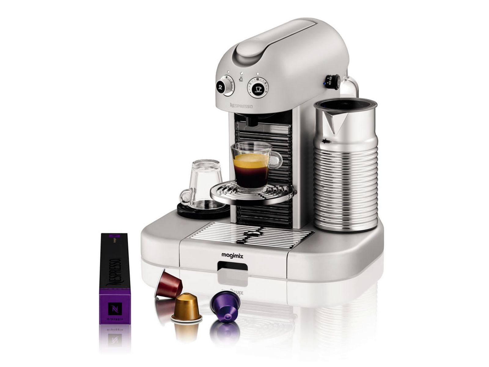 In een handomdraai kiest u de grootte van uw kopje: Espresso of Lungo. Creëer een variëteit aan verrukelijke koffierecepten op basis van melk met de Maestria stoompijp en de Gran Maestria Aeroccino melkopschuimer.