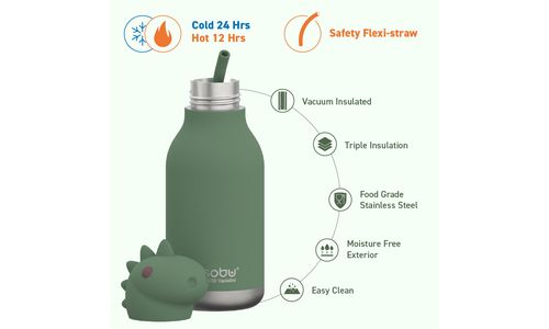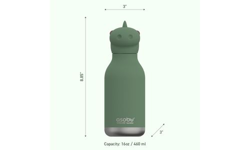 Op jacht naar een leuke en functionele waterfles voor je kleintje? Onze Dinosaur Asobu Bestie Bottle is een schattige roestvrijstalen kinderwaterfles met een zacht deksel! Deze 460ml fles is gemakkelijk vast te houden voor die kleine handjes en is 100% lekvrij, waardoor hij perfect is voor avonturen! Met het meegeleverde flexibele herbruikbare rietje wordt drinken leuk en spelletjes!