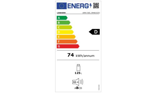 | Totale netto inhoud koelkast | 125 Liter |