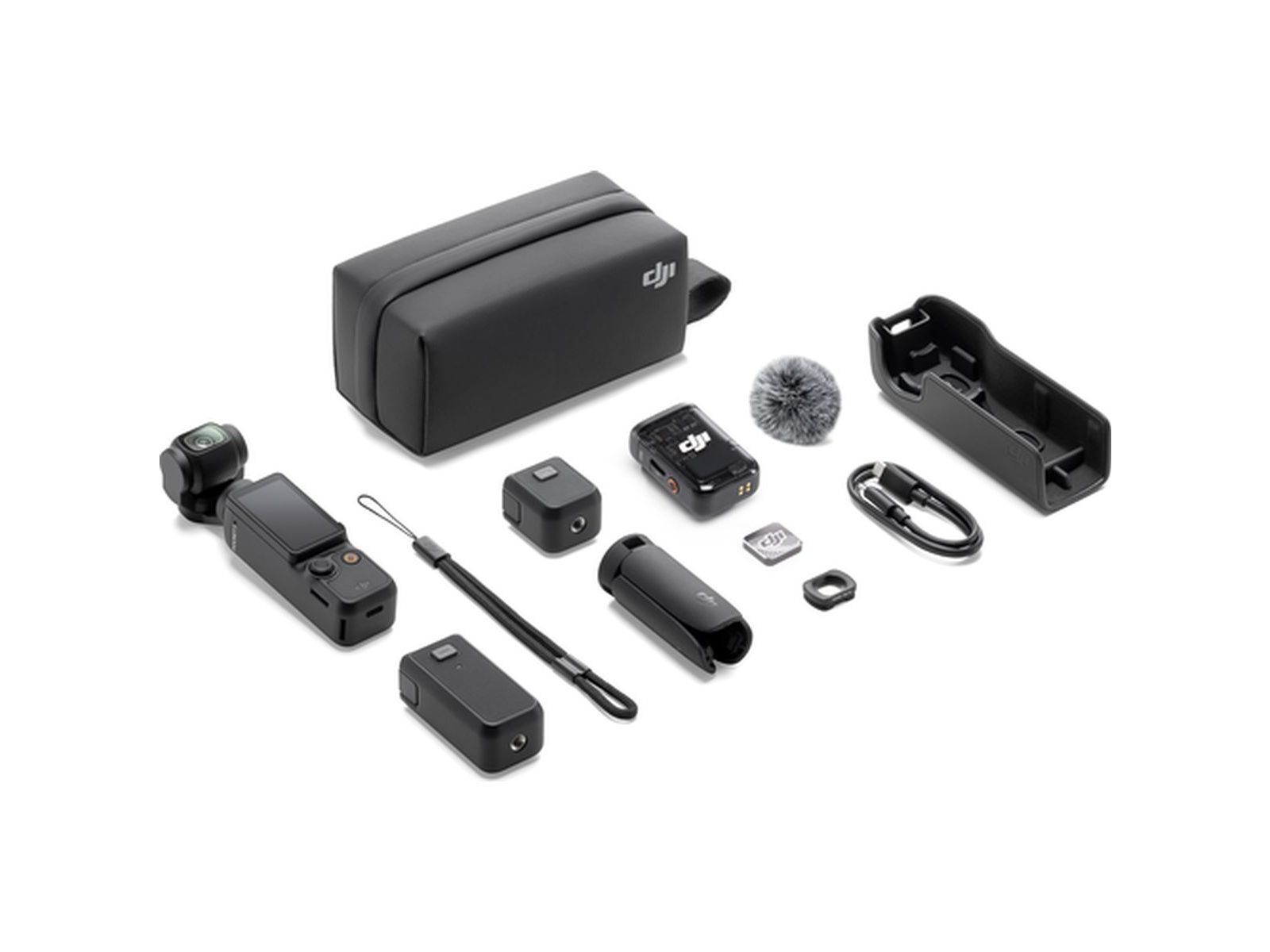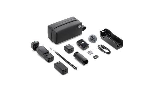 Osmo Pocket 3 1x, Type-C to Type-C PD Cable 1x, Osmo Pocket 3 Protective Cover 1x, DJI Wrist Strap 1x, Osmo Pocket 3 Handle With 1/4''Thread 1x, Osmo Pocket 3 Wide-Angle Lens, DJI Mic 2 Transmitter (Shadow Black), DJI Mic 2 Windscreen, DJI Mic 2 Clip Magnet 1x, Osmo Pocket 3 Battery Handle 1x, Osmo Mini Tripod 1x, Osmo Pocket 3 Carrying Bag 1x, Quick Start Guide 1x, Disclaimer 1x, Warranty Card 1x