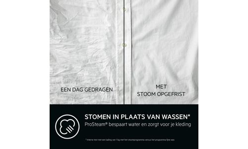 Stomen in plaats van wassen is een van de beste manieren om kleren op te frissen die geen volledige wasbeurt nodig hebben. De 7000 serie ProSteam® wasmachine gebruikt hiervoor het stoomprogramma, dat slechts 2 liter water per cyclus verbruikt en milder is voor je kleding.