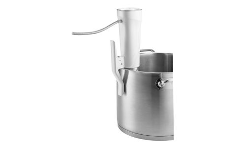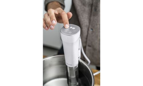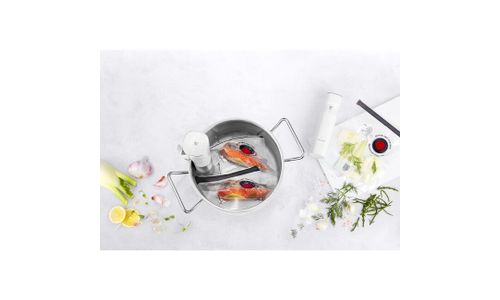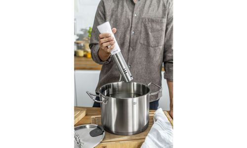 De ZWILLING ENFINIGY Sous?vide Stick tilt koken in jouw keuken naar een hoger niveau. Sous?vide koken is eenvoudig: stel je temperatuur in van 0 tot 90?°C in stappen van 0,5?°C, met een stabiele nauwkeurigheid van ±0,1?°C, en geniet van consistente resultaten — zonder stress of te gaar worden. De compacte stick met timer en LED?touchdisplay past in vrijwel elke pot en haalt diepe, volle smaken naar boven in vlees, vis of groenten. Ideaal voor iedereen die graag met minimale inspanning heerlijk kookt.