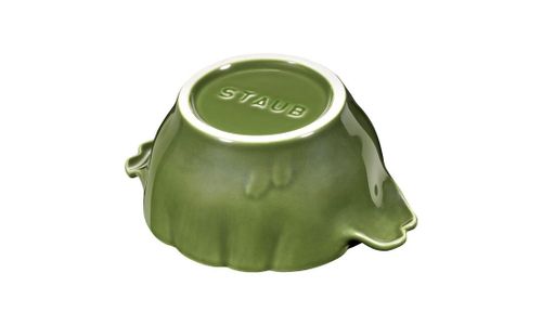 Deze uitzonderlijke cocotte van STAUB is bijzonder aantrekkelijk vanwege het indrukwekkende, naturalistische ontwerp. Het nabootst op getrouwe wijze de vorm van een artisjok en is een decoratieve blikvanger op de eettafel. De keramische serveerschaal is geschikt voor gebruik in de oven, magnetron en vaatwasser. De schaal heeft een diameter van 13 cm en een inhoud van 0,5 liter. U kunt uw gerechten alvast in porties bereiden en ze vervolgens op een opvallend decoratieve manier presenteren. Zelfs sauzen, dips en bijgerechten zorgen voor een visueel aantrekkelijk accent op tafel. Het basilicumgroen van de cocotte en de natuurlijke vorm van een artisjok vormen de perfecte setting voor het serveren van uw gerechten. De cocotte uit de groentetuin-serie van STAUB verrijkt uw keukengerei met een extravagant kunstwerk dat uw gasten zal verbazen.