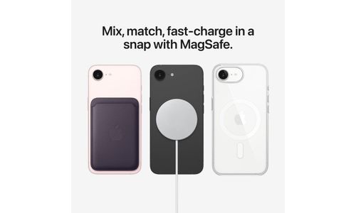Je kunt je iPhone 17e draadloos opladen met tot wel 15 W. Bij iPhone 16e is dat maximaal 7,5 W, dus opladen gaat nu nog sneller en is heel makkelijk. En dankzij de ingebouwde magneten klik je eenvoudig allerlei accessoires vast, zoals opladers en hoesjes.