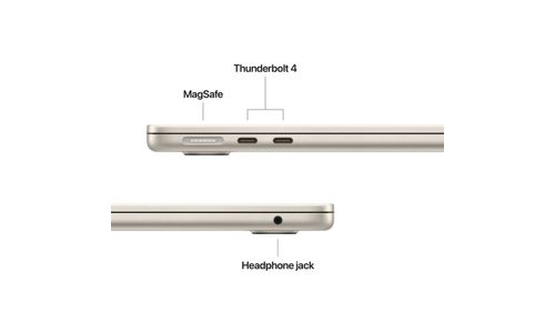 De MagSafe-oplaadkabel klikt magnetisch vast en weer los. Je hoeft dus niet bang te zijn dat je MacBook Air opeens door de lucht vliegt. Via de twee Thunderbolt 4-poorten kun je professionele accessoires aansluiten en je Mac opladen. De mini?jack-aansluiting ondersteunt koptelefoons met hoge impedantie. En de Apple N1?chip voor draadloze verbindingen zorgt voor betere prestaties en betrouwbaarheid van wifi 7 en Bluetooth 6.