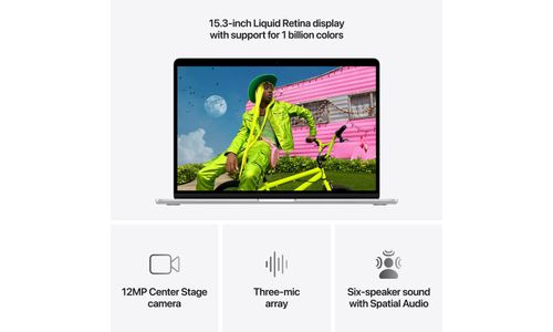 Het Liquid Retina-display van MacBook Air ondersteunt 1 miljard kleuren en heeft een geweldige resolutie. Dankzij het grote contrast en de duidelijke details spatten foto’s en video’s van het scherm, en is tekst haarscherp.