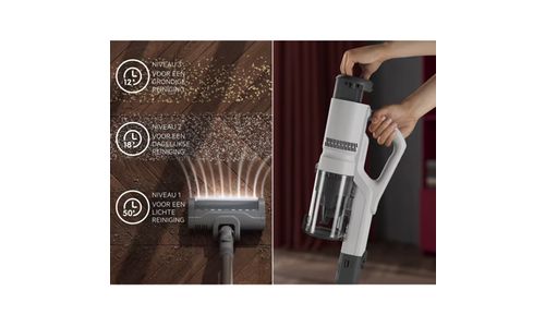 Ontworpen voor tot 50 minuten draadloze kracht*. De uitneembare batterij wissel je eenvoudig of laad je opnieuw op, zodat je zonder onderbreking kunt blijven schoonmaken.